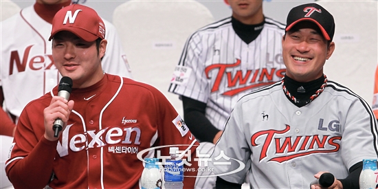 프로야구 출범 이후 최초로 9개 구단으로 30일 개막을 앞두고 있는 ‘2013한국야쿠르트 프로야구’ 미디어데이 행사가 25일 오후 서울 광장동 건국대학교 새천년관에서 열렸다. LG 봉준근이 넥센 박병호가 가장 쉬운 타자라고 얘기하고 미소를 짓고 있다.
