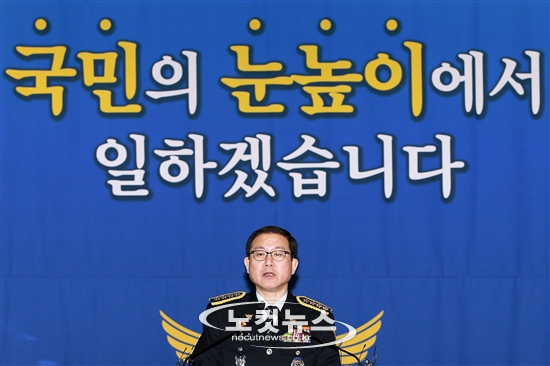 이성한 신임 경찰청장이 29일 오후 서울 미근동 경찰청에서 열린 ‘제18대 경찰청장 취임식’에서 취임사를 하고 있다.
