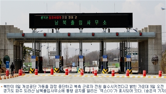 이에 따라 우리 측도 직원들을 철수시키기 시작, 사실상 9일부터 개성공단 업무는 전면중단 될 위기에 처했다.