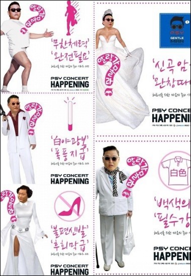 싸이는 지난 12일, 자신의 트위터에 '마음의 준비' 시리즈라는 글과 함께 5장의 사진을 차례로 게재하며 콘서트 관람 팬들에게 지침사항을 전달했다.