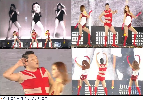 싸이는 연신 몸을 흔들어대며 격정적인 춤사위를 선보였다. 우스꽝스러운 싸이의 춤은 양 옆의 여성 댄서들과 비교되어 한층 재미를 줬다. 관중들은 모두 ‘비욘세’로 분한 싸이에 즐거워하며 함성을 질렀다.[BestNocut_R]