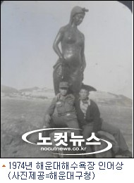 70-80년대 해운대해수욕장 피서객들의 주요 사진 배경이 됐던 해운대 인어상. 1987년 태풍 셀마에 휩쓸리기 전까지 해운대의 명물로 자리했던 인어상은 이제 사진 속 아련한 추억으로 남았다.