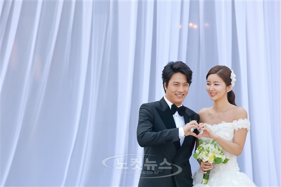 배우 한재석과 박솔미가 21일 오후 서울 광장동 쉐라톤 그랜드 워커힐호텔 애스톤하우스에서 결혼식전 기자회견에서 포즈를 취하고 있다.