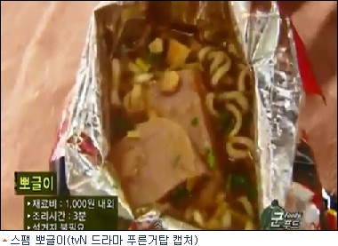 티비엔(tvN) ‘푸른거탑’의 시청자라면 모두 ‘군대 뽀글이’를 기억할 것이다. ‘뽀글이’란 라면 봉지에 그대로 라면과 스프를 넣고, 뜨거운 물을 부어 익혀 먹는 라면이다. 봉지라면을 마치 컵라면처럼 조리해 먹는 것. 맛있는 뽀글이를 만드는 비법은 물을 봉지의 반 정도만 붓고 중간 부분을 접어 나무젓가락으로 잘 봉하는 것이다. 일반 뽀글이 외에도 스팸을 넣어만든 스팸뽀글이 등 재료에 따라 다양한 뽀글이들이 있다. 젓가락 대신 빨래집게를 이용하기도 하는데 이 집게는 계급이 어느 정도 올라가야 사용할 수 있다고 한다. 군대매점 PX에서는 종종 뽀글이 전용 라면을 팔기도 한다. [BestNocut_R]