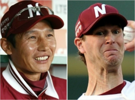 '십년감수했네' 염경엽 넥센 감독(왼쪽)과 에이스 앤디 밴 헤켄.(자료사진=넥센 히어로즈)