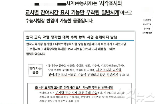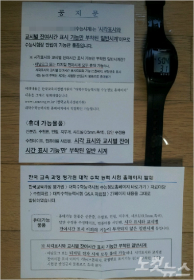 교육부 관계자는 "시각 표시와 잔여시간 표시 기능만 있는 시계만 허용된다"며 "그 외 기능이 있는 경우는 엄밀히 말해 규정 위반"이라고 강조했다.