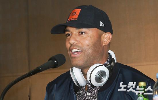 미국 프로야구 뉴욕 양키스의 마무리 투수로 수많은 기록을 남긴 ‘양키스 수호신’ 마리아노 리베라가 12일 오후 서울 영등포 타임스퀘어에서 공식 기자회견을 갖고 있다.
