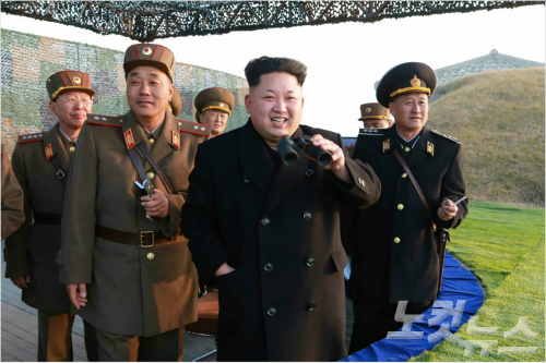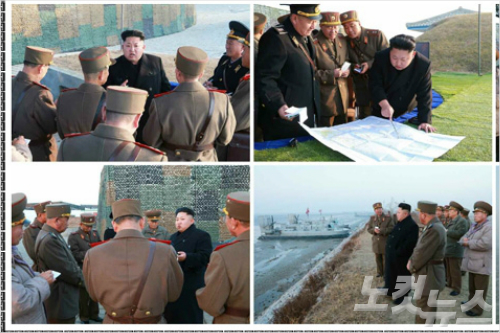 김정은 제1비서가 인민군 제572연합부대와 제630연합부대 합동훈련 지도 모습(사진=노동신문)