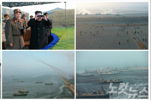 이어 "김 제1비서가 해상수송집단의 침로와 상륙대형 편성을 지켜보며 해상 이동과 상륙해안 접근때 반작용(공격)을 제압하기 위한 방안과 그에 따른 과업들을 밝혔으며, 특수작전부대의 상륙전투와 대상물 습격전투가 진행됐다"고 소개했다.