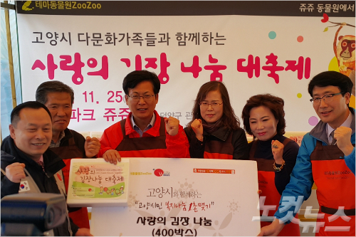 테마동물원쥬쥬는 25일 오전 최성 고양시장과 해외 봉사단체인 월드쉐어, 고양시 다문화가족 등 100여 명과 함께 '사랑의 김장 나눔 대축제' 행사를 가졌다고 밝혔다.