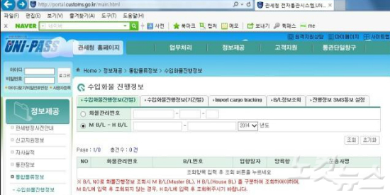 관세청 홈페이지의 '수입화물 진행정보'에서 운송장번호(H B/L)를 입력하면 물품명과 가격, 수량, 세금 등 수입신고내역과 반입과 검역 통관보류, 반출 등 통관진행현황 등을 확인할 수 있다.