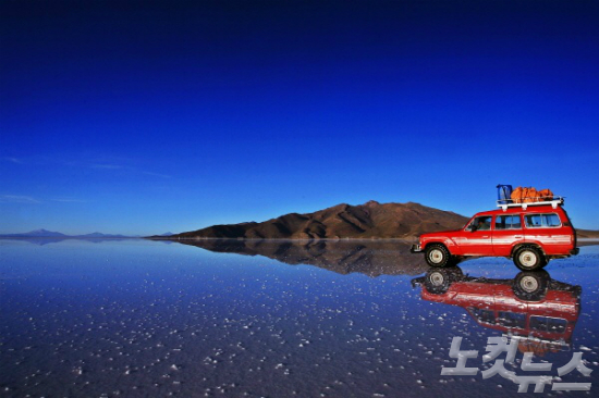 비가 고인 우유니 소금사막 (사진=오지투어 제공)