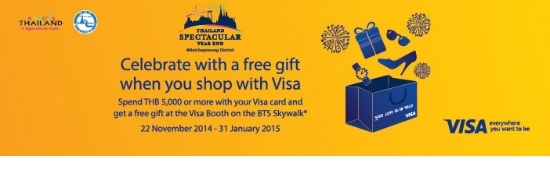 비자카드로 5,000바트 이상 지출한 영수증을 지상철(BTS) 칫롬역(Childlom)에 위치한 게이손몰(The Gayson) 입구 또는 에라완 방콕 쇼핑 센터 근처에 있는 행사 부스에 제시하면 태국 실크 스카프, 아이패드 등의 선물을 증정한다.