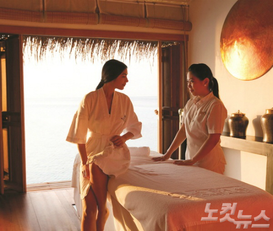 각종 해양스포츠로 하루를 보냈다면 스파로 여행의 피로를 풀 수 있다. 6개의 싱글 트리트먼트 룸과 2개의 더블 트리트먼트 룸, 요가 파빌리온이 갖춰진 스파시설은 가족여행객과 허니무너들에게 인기 만점이다.