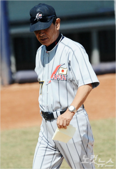 '프로가 가도 안 되더라' 2008년 베이징올림픽 일본 야구 대표팀 사령탑이었던 호시노 센이치 라쿠텐 선임 고문이 "2010년 도쿄올림픽에는 아마추어 선수가 가야 한다"는 주장을 내놨다. 사진은 호시노 고문이 베이징 대회 4강전에서 한국에 패한 뒤 그라운드를 빠져나가고 있는 모습.(자료사진)