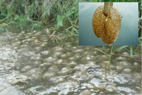 수초지역에 큰빗이끼벌레가 집단서식하는 모습. 작은 네모는 큰빗이끼벌레의 군집 (사진=환경부 제공/노컷뉴스)