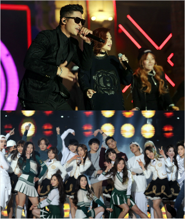 '럭키보이즈' 투피엠 닉쿤, 씨앤블루 정용화, 위너 송민호, 인피니트 엘, 비원에이포 바로 등은 싸이의 '연예인'으로 특별한 무대를 꾸몄다.