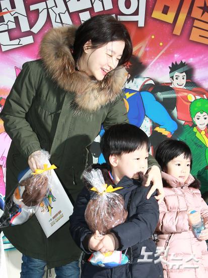 배우 이영애가 쌍둥이 아이들과 함께 23일 오후 서울 서초동 한전아트센터에서 가족뮤지컬 ‘스페이스 번개맨’ 관람 전 포토타임을 갖고 있다.