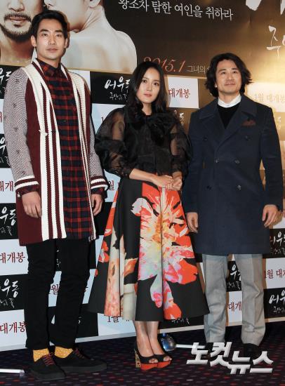 배우 여욱환(왼쪽부터), 송은채, 백도빈이 23일 오후 서울 영등포CGV에서 열린 영화 ‘어우동 : 주인 없는 꽃’ 언론시사회에 참석해 포토타임을 갖고 있다.