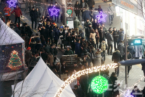 크리스마스 이브인 지난 24일 오후 서울 신촌 연세로 크리스마스 거리축제를 찾은 시민들이 거리를 가득 메우고 있다. (사진=황진환 기자)