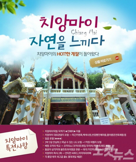 노랑풍선이 태국의 아름다운 휴양지 치앙마이의 자연을 느낄 수 있는 '치망마이의 HOT!한 계절이 돌아왔다' 기획전을 선보이고 있다.