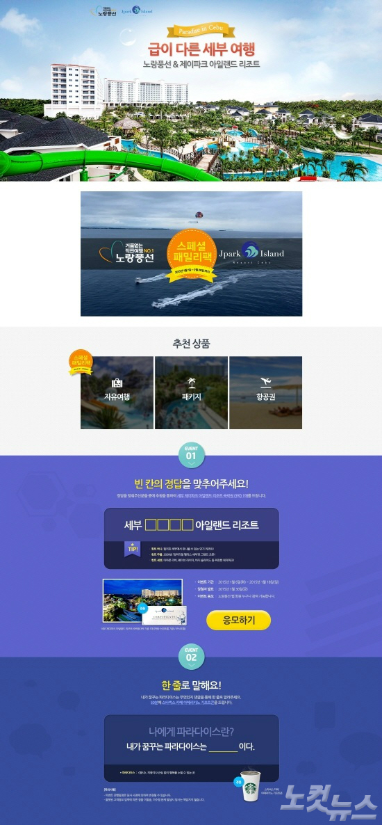 노랑풍선은 지난 1월5일부터 대대적인 세부 제이파크 아일랜드 리조트 스페셜 패밀리팩 홍보와 더불어 홈페이지(