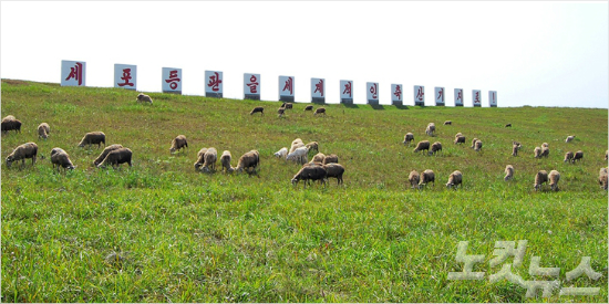 북한 강원도 세포군 일대에 조성한 대규모축산단지인 세포등판 모습(사진=노동신문)