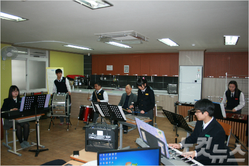 지난 14일 경남 김해 진영고등학교 장애학생들인 도움반 교실에서 경쾌한 음악이 연주됐다.