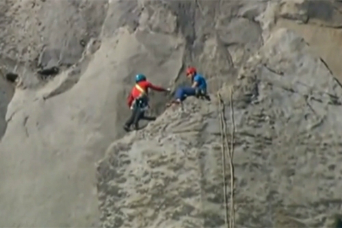 맨손으로 새벽 직벽을 등반하고 있는 콜드웰과 조르게슨 (사진=유튜브영상 캡처)