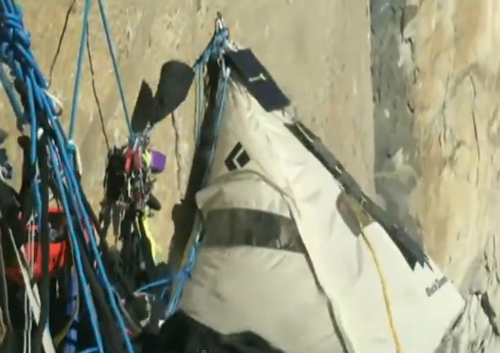 암벽에 설치된 텐트 (사지=유튜브영상 캡처)