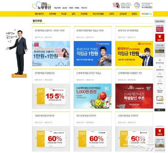 노랑풍선이 홈페이지 내 할인쿠폰존에서 환전쿠폰과 면세점 쇼핑지원금 등 할인쿠폰을 제공하는 한편 다양한 이벤트를 펼치고 있다.