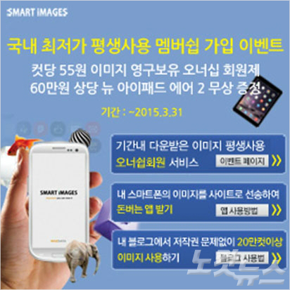 이미지 컨텐츠 전문 업체인 ㈜위즈데이타는 25만컷 이상의 다양한 고품위 이미지를 1년 가입만으로 기간 내 다운받은 수만 컷 이미지의 평생 재사용이 가능한 스마트이미지(www.smartimages.co.kr) 오너십 서비스 출범기념 아이패드에어2 신제품 무상 증정 이벤트를 2개월간 시작한다.