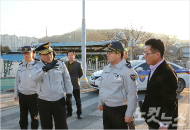 윤철규 충북지방경찰청장이 27일 뺑소니 사고 현장을 방문해 현장회의를 개최했다(사진-충북지방경찰청 제공)