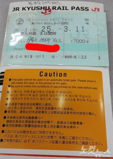 일본 큐슈지역 레일패스 실물티켓 (사진=H.I.S.코리아 제공)