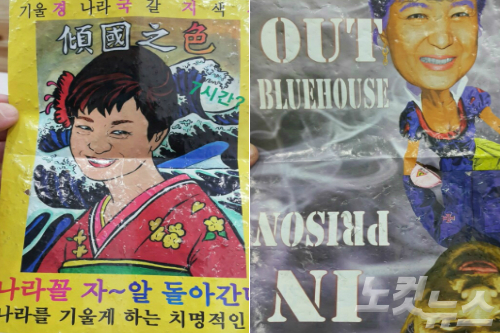 세월호 침몰 사고를 빗댄 것으로 보이는 해당 면에는 박 대통령을 비방하는 각종 문구도 적혀있다.