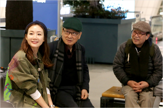 배우 이순재, 신구와 함께 그리스로 출국하는 배우 최지우. (CJ E&M 제공)