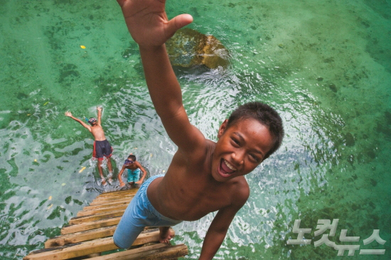이곳에 왔다면 누구든지 사다리를 타고 30미터 깊이의 해구에 몸을 풍덩 던지는 용기를 시험해 보고 싶어 한다.