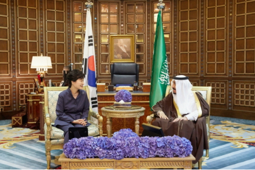 박근혜 대통령과 살만 빈 압둘아지즈 알 사우드 국왕이 3일 오후(현지시간) 사우디아라비아 리야드 에르가궁에서 정상회담을 하고 있다. (사진=청와대 제공)