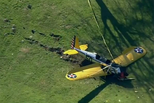 포드가 조종한 경비행기는 2차 세계대전 당시 사용됐던 빈티지 모델로, '라이언 비행기'로 불린다고 LA타임스는 전했다.