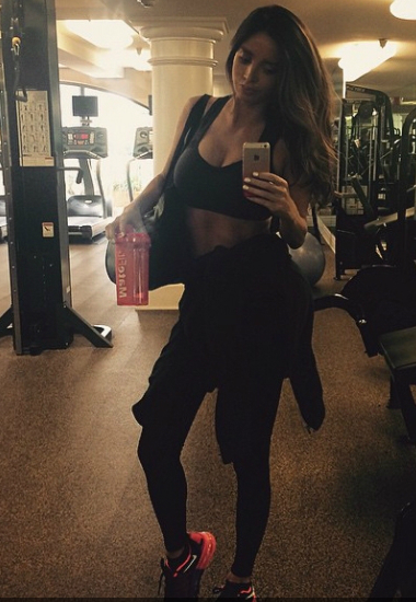 사진 속의 스테이지는 잘록한 허리와 단단한 복근을 뽐내고 있다. 스테이지는 꾸준한 운동을 통해 몸매를 관리한 것으로 알려졌다.