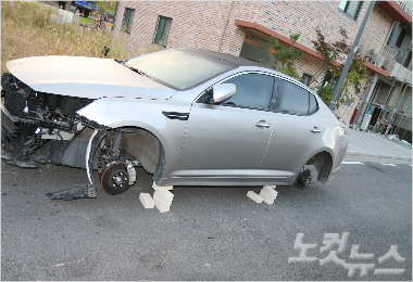 대전 둔산경찰서는 주차된 고급승용차만을 골라 부품을 훔쳐 달아난 최모(34) 씨를 상습절도 혐의로 구속했다. 피해를 당한 차량. (사진=대전 둔산경찰서 제공)