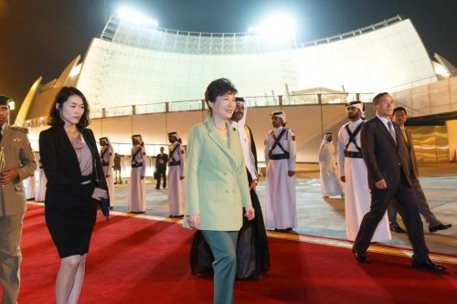 박 대통령은 한국 기업의 2022년 카타르월드컵 인프라 건설 참여와 관련, "(카타르 국왕이) 한국 기업들을 우선적으로 배려하고, 유리하게 해주도록 지시를 다 내렸다는 말씀도 했고, 또 우리가 울산이나 광양에 동북아 오일허브를 구축하고 있는데 (카타르가) 참여할 수 있도록 조치가 많이 됐다"며 "그런 여러 부분에서 협력을 확실히 한 것을 확인할 수 있어 보람이 참 크다"고 밝혔다.