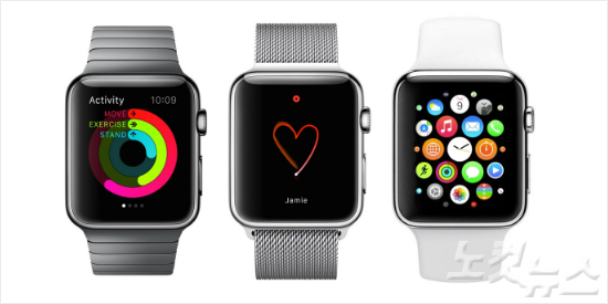 애플 워치는 아이폰과 연동해 간편 결제 서비스인 '애플 페이'를 사용할 수 있고 심장 박동수 측정 등 건강 관리 기능을 갖고 있다.
