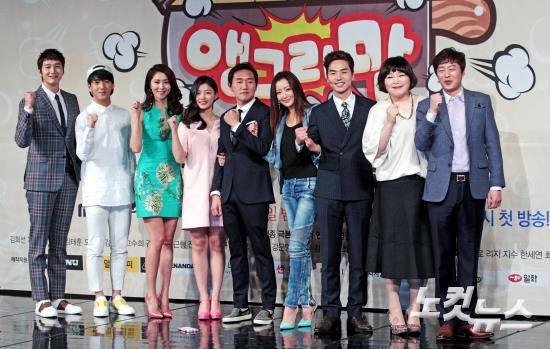 17일 오후 서울 마포구 MBC 상암 신사옥 골든마우스 홀에서 열린 수목드라마 '앵그리맘' 제작발표회에서 출연진이 포즈를 취하고 있다. 왼쪽부터 지현우, 바로, 오윤아, 김유정, 최병길, 김희선, 김태훈, 고수희, 김희원.