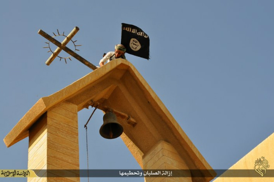 수니파 급진 무장단체 '이슬람국가'(IS)가 이번에는 무참히 교회를 파괴하고, 그 자리에 IS 깃발을 내걸었다.