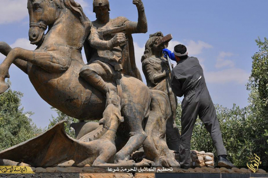 IS 대원이 성 조지 동상을 파괴하고 있다.