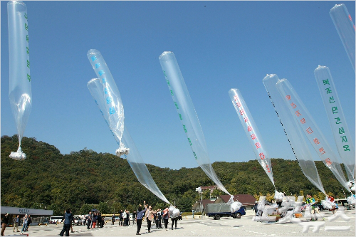 탈북자 단체가 대북전단을 보내는 장면(사진=CBS)