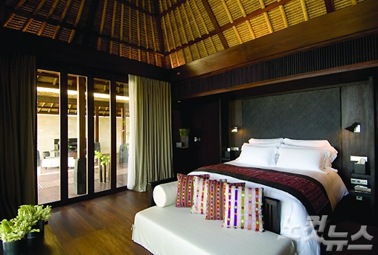 침실에서는 테라스와 바다가 내다보이는 아름다운 전망이 눈앞에 펼쳐지며 욕실에서는 바닥에서 천정까지 이어진 전면 유리를 통해 개인 정원의 정취를 만끽할 수 있다. 빌라는 계단식으로 설계되어 외부의 시선이 철저히 차단되므로 신경쓸 일도 없다.