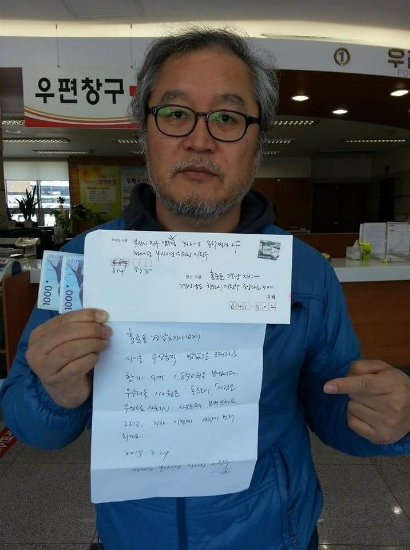 이 위원장은 현금 2천원과 함께 홍 지사에게 쓴 편지도 동봉했다.