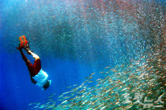 특히 쥐가오리를 뜻하는 만타가오리는 그 크기가 작게는 2.5m에서 크게는 6m에 달하는 거대 가오리로 한 번 출몰하면 여러 마리의 만타가오리를 만나볼 수 있다.